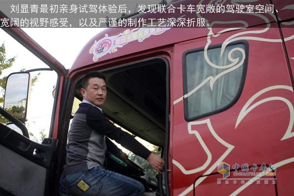 “初次遇見聯(lián)合卡車,是在跑運輸?shù)穆飞,遠遠看過去,就覺得聯(lián)合卡車非常漂亮,威武,大氣,當時以為是進口卡車,后來才知道是國內(nèi)的新品牌。之后,我就開始關(guān)注聯(lián)合卡車的相關(guān)信息,包括用戶評價等”,劉顯青說。