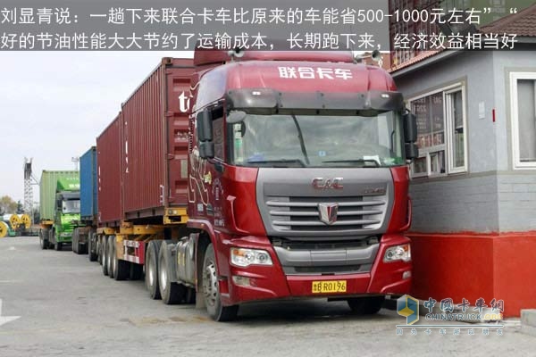 “現(xiàn)在跑同樣的路段,較之前的卡車比,一趟下來聯(lián)合卡車能省500-1000元左右”,劉顯青說,“好的節(jié)油性能大大節(jié)約了運輸成本,長期跑下來,車輛帶來的經(jīng)濟效益就相當可觀。”