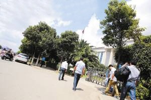 出于各種原因考慮,被告人不愿直面鏡頭。圖為臨近開庭時(shí)被告人依次走進(jìn)法院大門